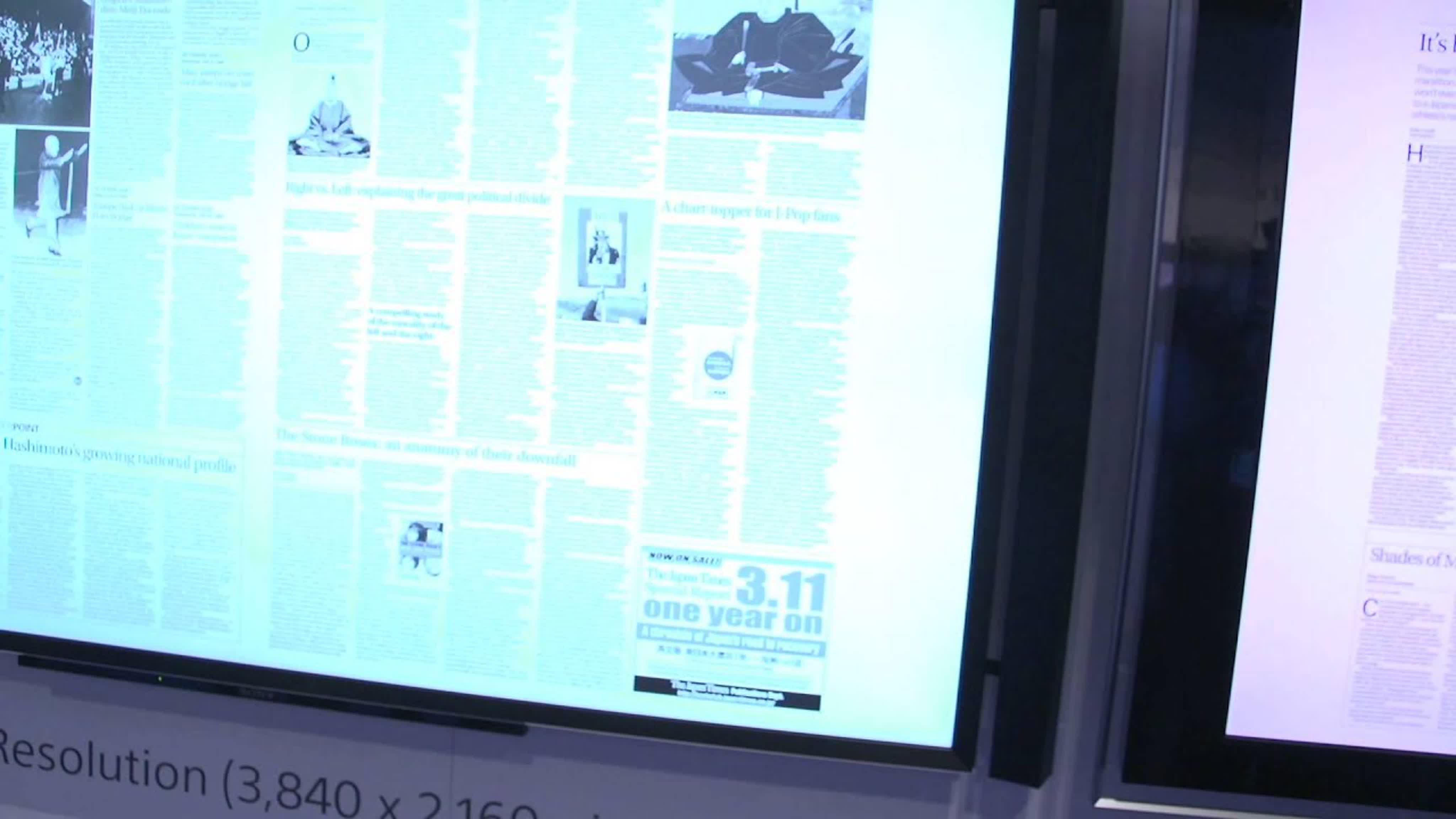Sony put up a picture of newsprint sidebyside on their 4K and 1080p models of TVs to demonstrate the improved clarity that can be achieveed with 4K. Day 3 video 11